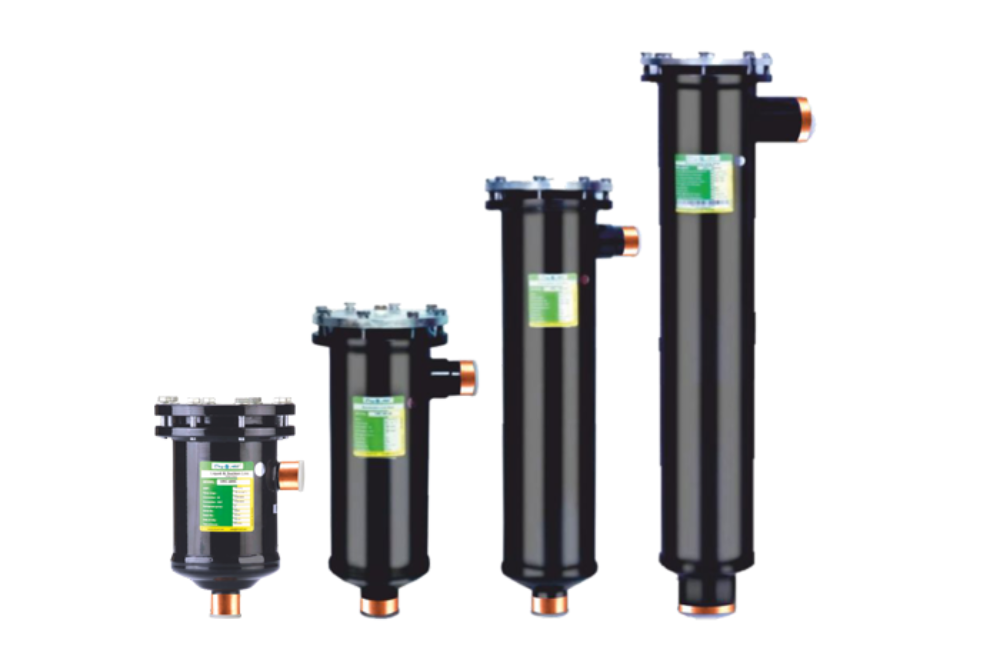 Core shell with replaceable solid core is used in Liquid and/or Suction lines in large refrigeration and air-conditioning systems.